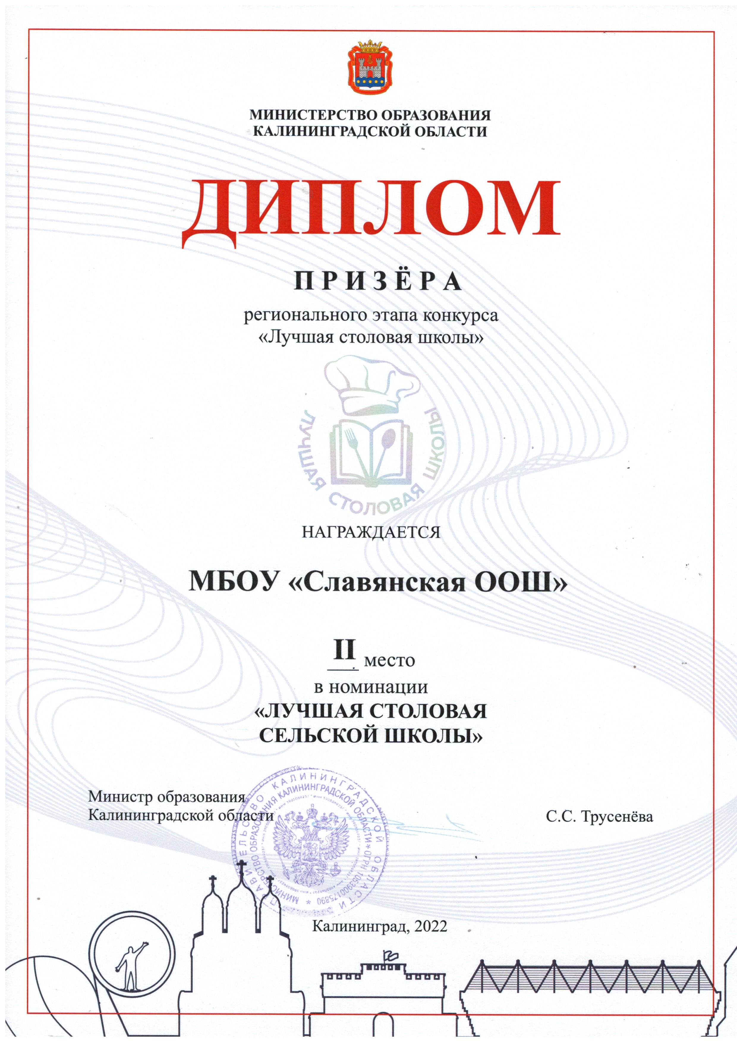Диплом призёра в номинации "Лучшая столовая сельской школы"